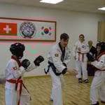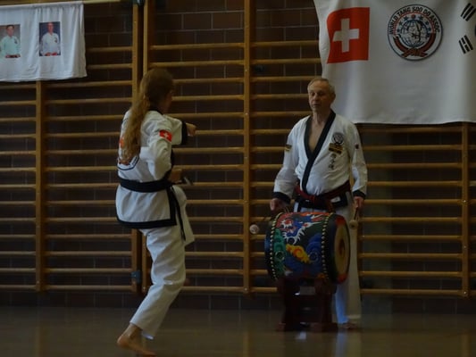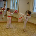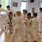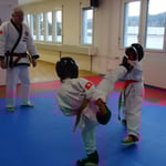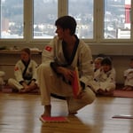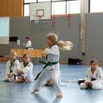 Meister Klaus Trogemann aus Deutschland brachte unsere Kinder im Sparring, der Fallschule und den Grundtechniken einiges bei.