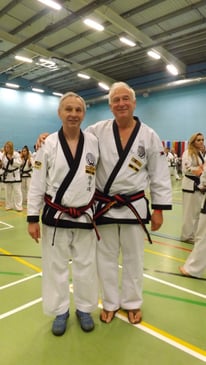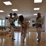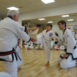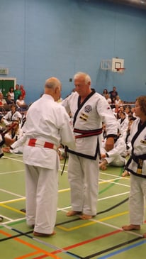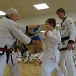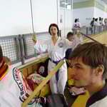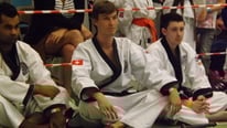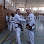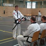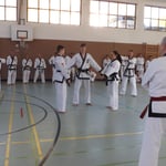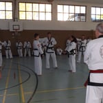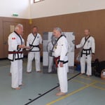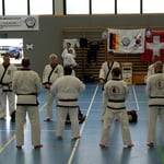 Stefan Peters und Richard Auer (D), nahmen schon seit längerem an den Vorbereitungen für die Master Prüfung teil. Um überhaupt an der Prüfung zugelassen zu werden, muss man nach der 4. Dan Prüfung, mindestens 4 Jahre lang warten und an 4 "Master - Clinics" teilnehmen. Von denen die eine Teilnahme auch die Vorprüfung ist und die Anderen 3 je einen Teil der Prüfung. Es wird einem viel abverlangt und ist eine sehr harte Schule bei der man Wissen, Können, Ausdauer und Beharrlichkeit beweisen muss.